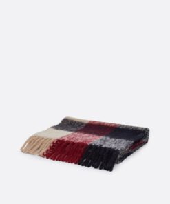 MIXED CHECK FLUFFY WOOL BLEND SCARF