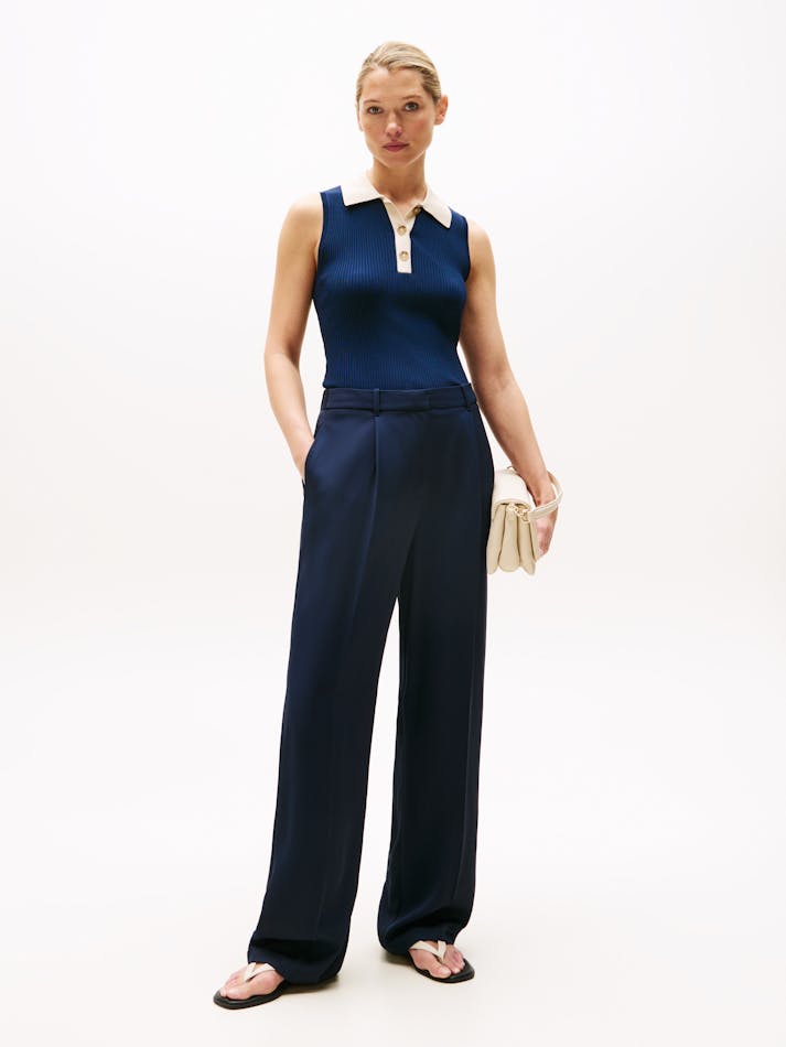 MIXED KNIT SLEEVELESS SLIM POLO JUMPER