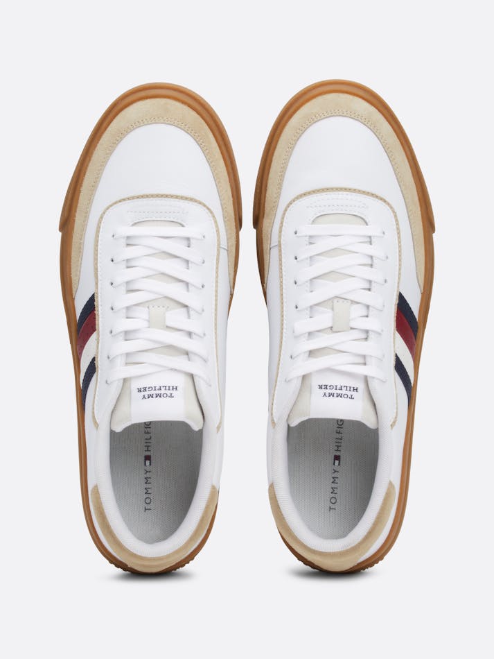 These leather trainers offer a contemporary take on a timeless design, with textured panels and eye-catching signature detailing.