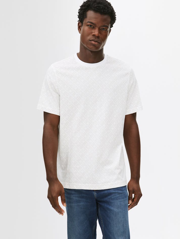 With its all-over monogram print, this pure cotton t-shirt brings a bold Tommy statement to your casual wardrobe, finished with the iconic flag embroidery on the sleeve.