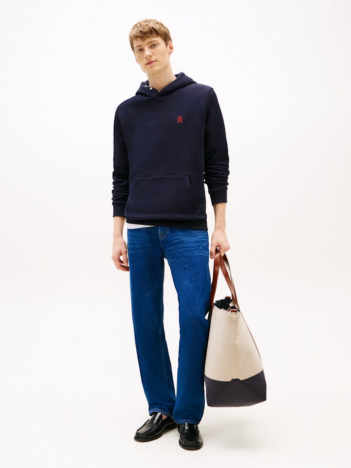 This hoodie features a classic kangaroo pocket and monogram embroidery for a clean, branded touch. Soft and comfortable, it’s perfect for everyday wear