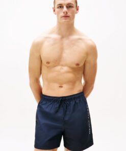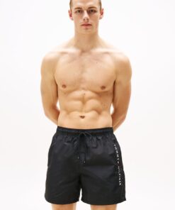 Stylish and practical, these mid-length swim shorts have a comfortable drawstring waist plus useful side and back pockets.