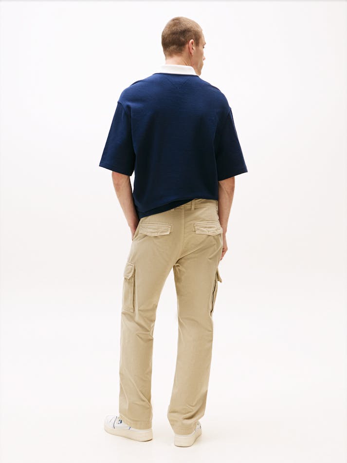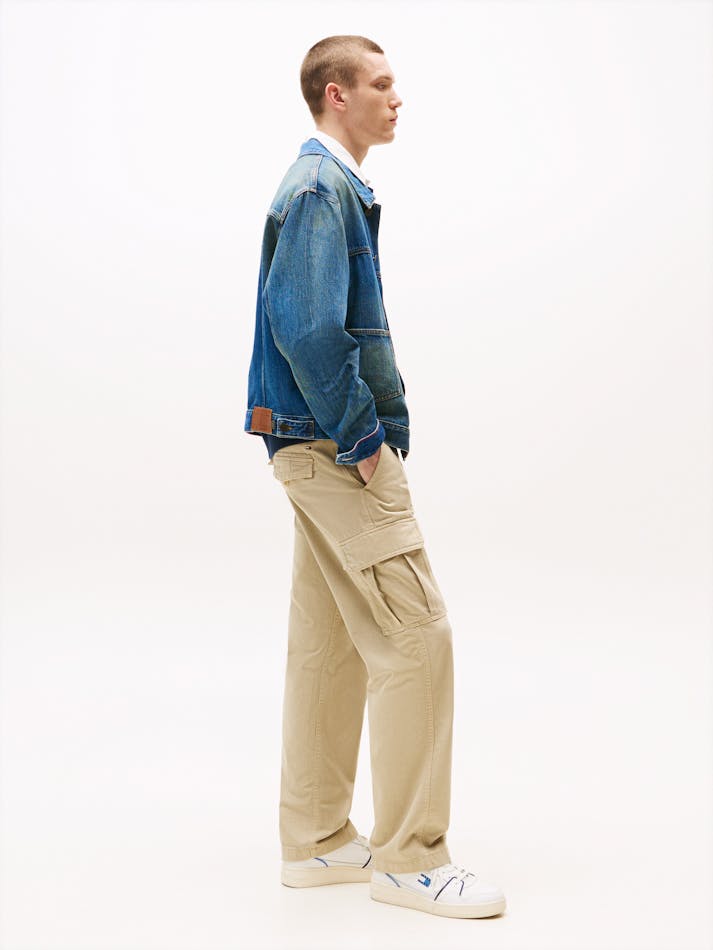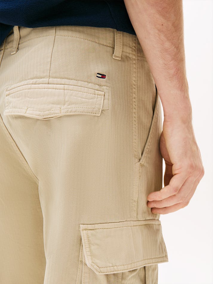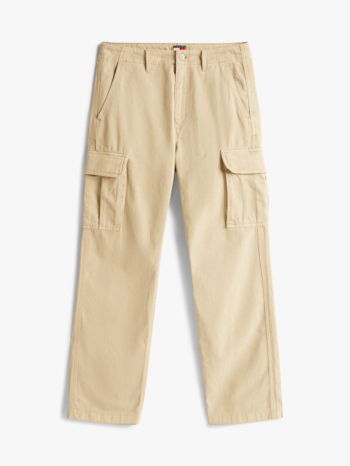 Add comfort and practicality to your wardrobe with these cargo pants, crafted from an organic cotton blend. Featuring practical pockets and a subtle herringbone weave, they’re finished with Tommy Jeans branding.