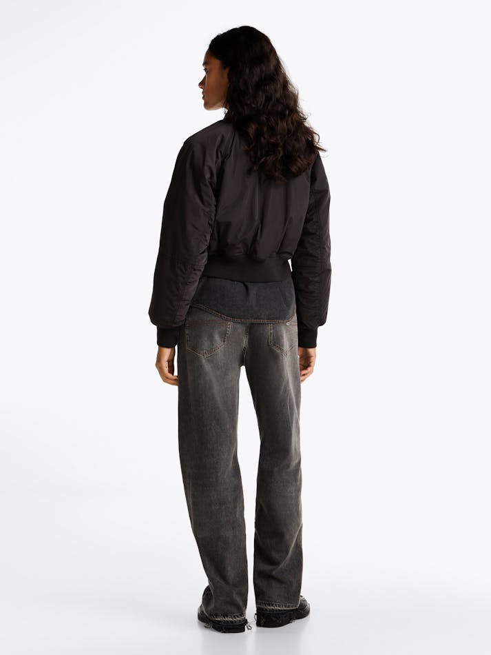 This classic bomber jacket features a water-repellent finish and insulating padding, upgrading a retro style for colder weather.