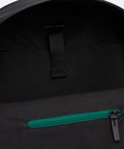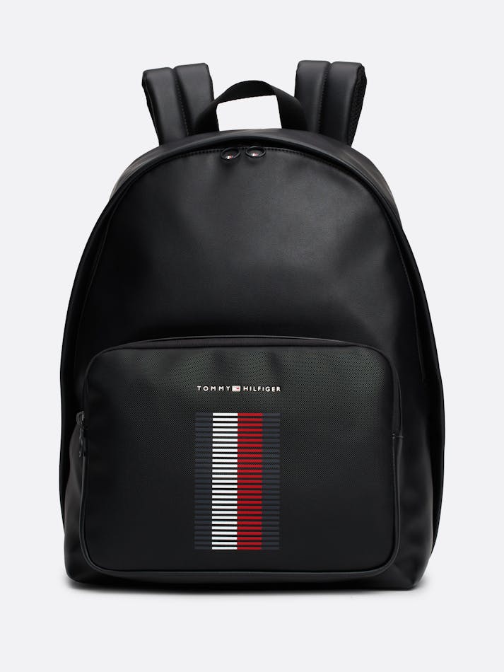 A pique texture on the pocket contrasts with the smooth finish of this backpack, complete with a protective sleeve for your laptop.