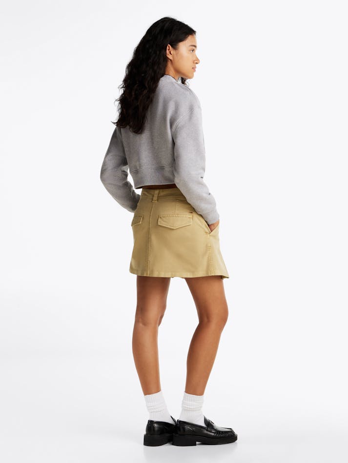 This pleated mini skirt features flap pockets at the back to add a casual utility-informed vibe to its flattering look.