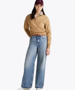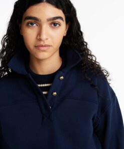 Elevate the basics beyond the ordinary with this sweatshirt that combines a sporty polo collar with elegant gold-tone buttons.