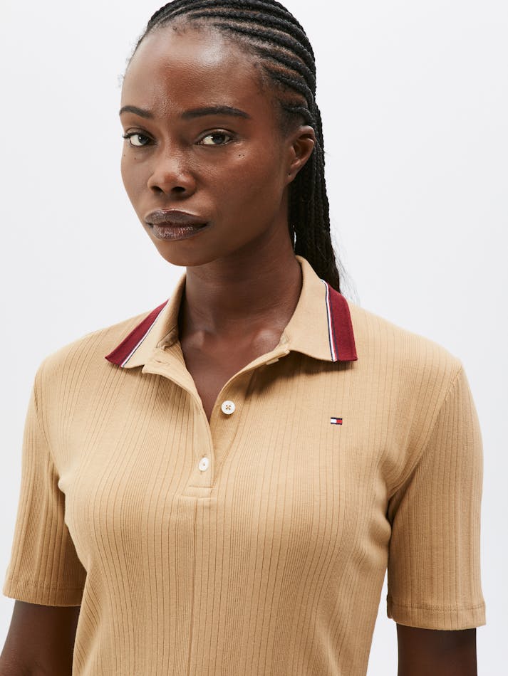 The rib knit and tipped details add a refined touch to this classic polo dress. Crafted from smooth stretch cotton, it features a fit-and-flare silhouette for a flattering look.