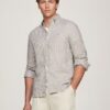For smart casual-styling, this pure linen shirt is finished with a gingham check and signature flag embroidery on the chest.