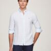For smart casual-styling, this pure linen shirt is finished with a gingham check and signature flag embroidery on the chest.