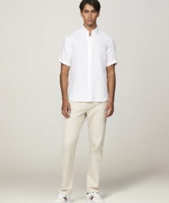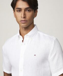 Nail the smart casual dress code with this premium linen short sleeved shirt. Featuring a subtle check all over, this style features contrast buttons down the front and on the collar, and a curved hemline making tucking into pants easy and neat.