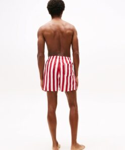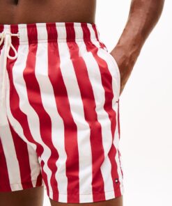Elevate your poolside looks with these mid-length swim shorts, featuring a bold all-over print and subtle branding for signature style.