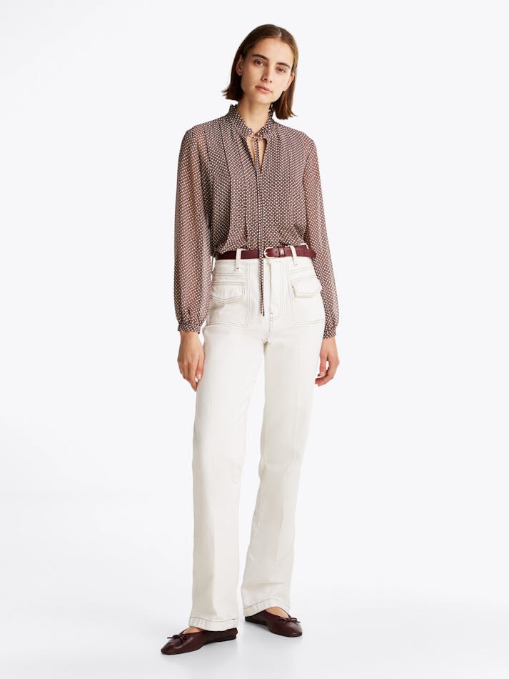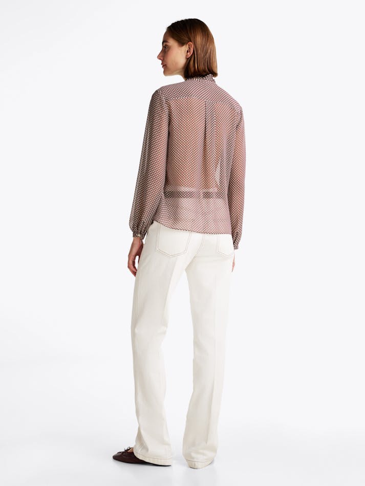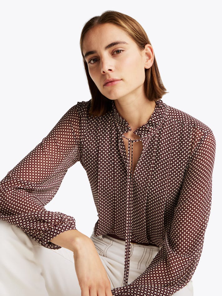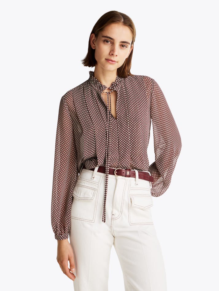 Embrace modern femininity with this pleated blouse, featuring a gathered neck and made from sheer, floaty fabric for a lightweight feel.