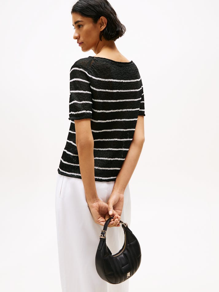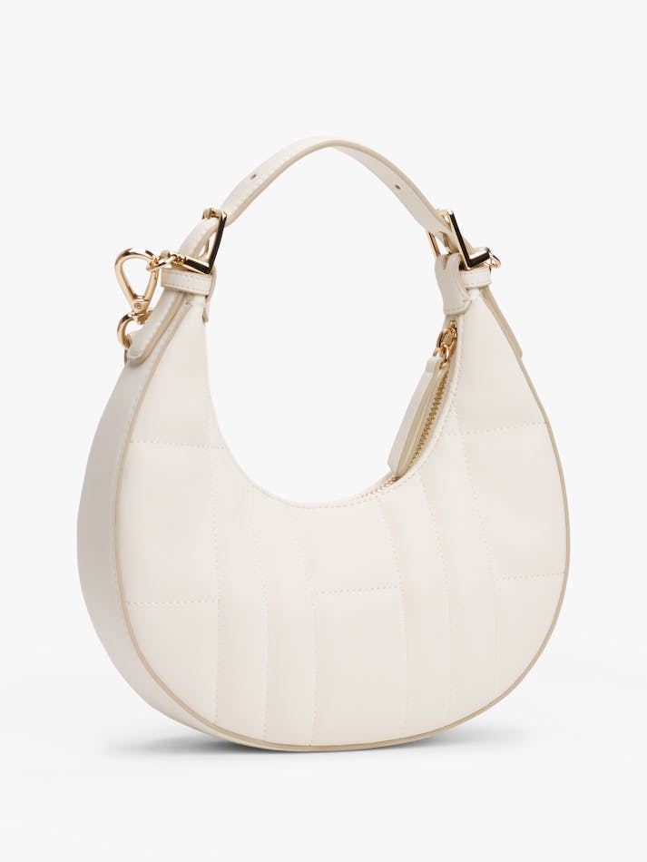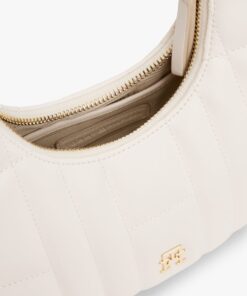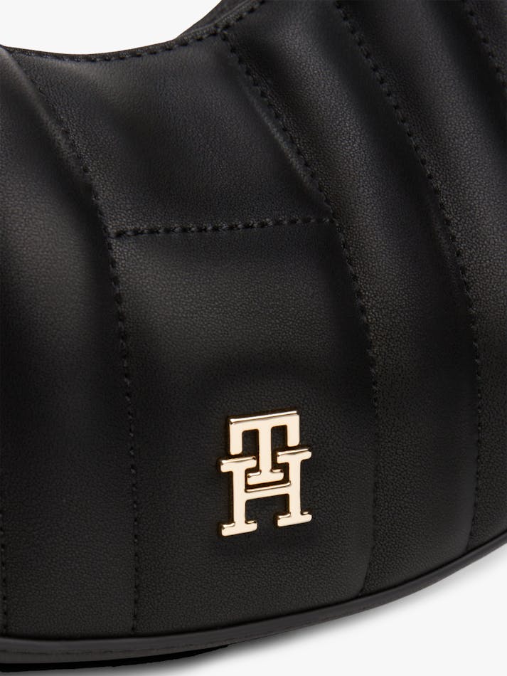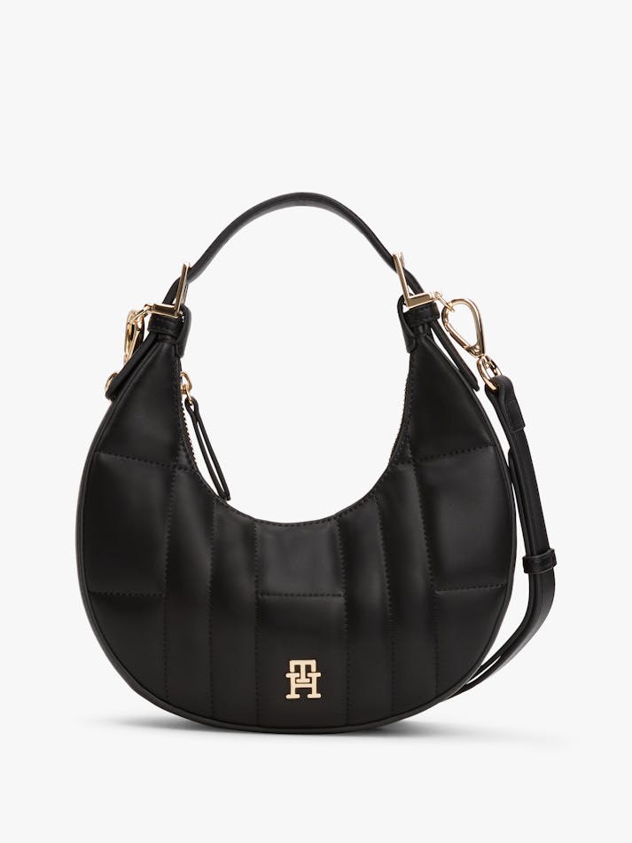 This crossbody shoulder bag blends practicality and elegance, with its quilted detailing, curved silhouette and gleaming TH monogram plaque.