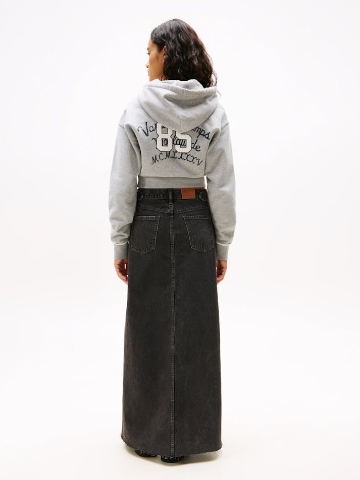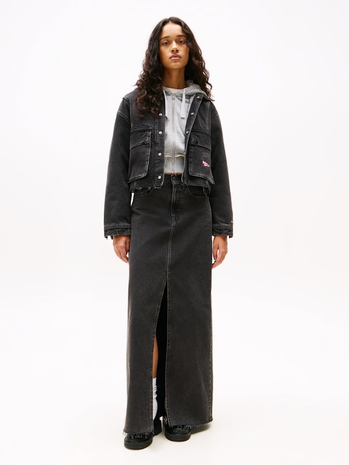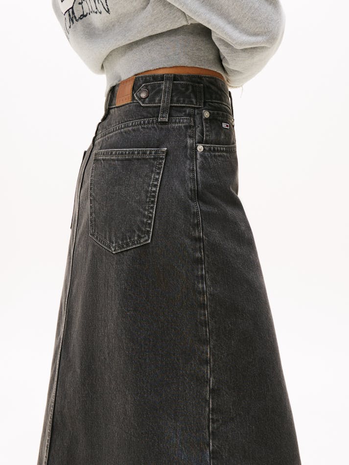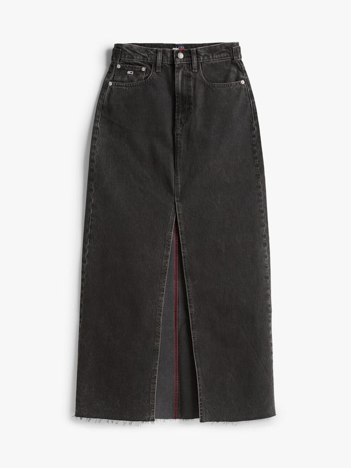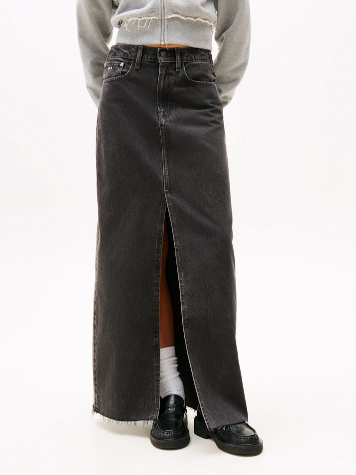 This denim skirt is a modern take on a classic, with its maxi-length cut that’s finished with a stylish front slit.