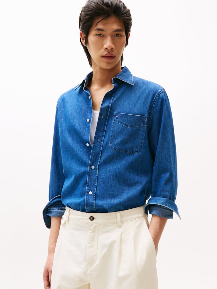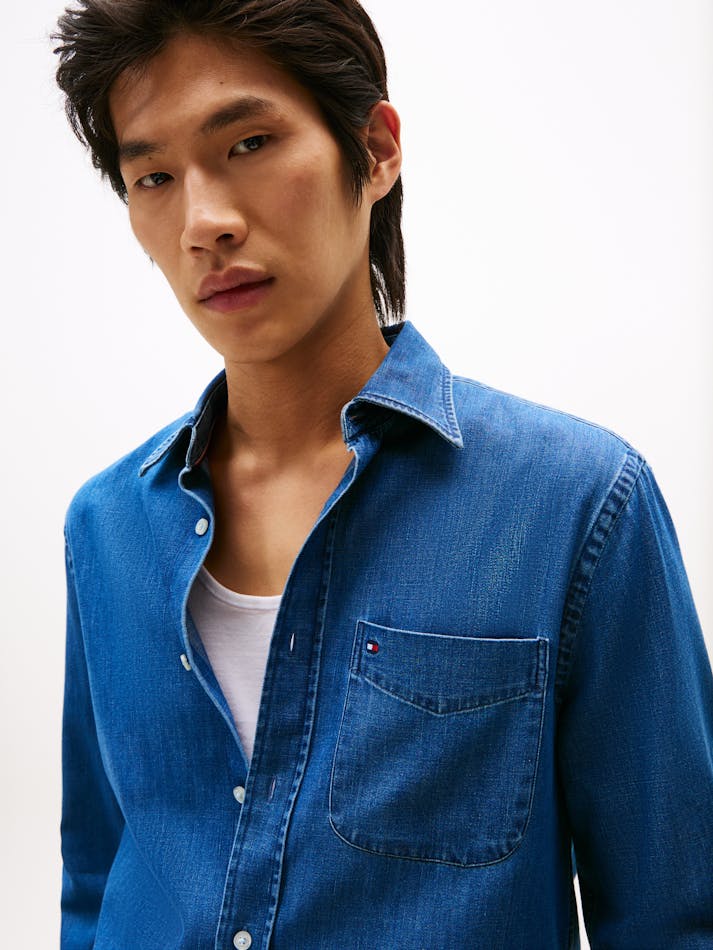 Add a lightweight layer to weekend outfits with this denim shirt, cut in a timeless regular fit with a handy chest pocket.