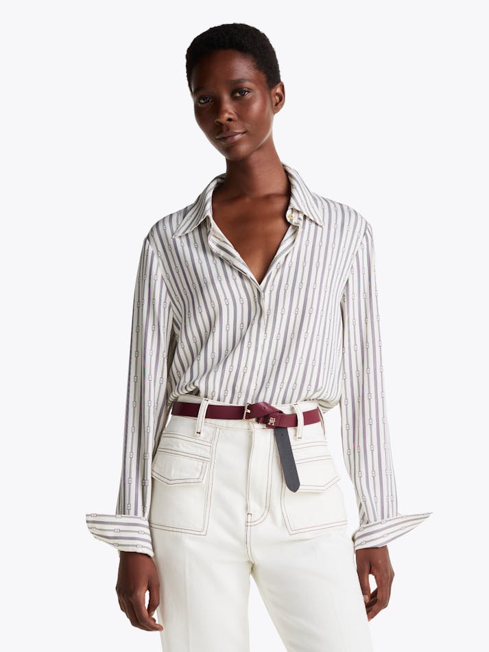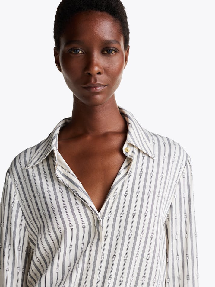Look polished at events in this soft shirt featuring an all-over print and a logo-embossed button for a subtle branded touch.