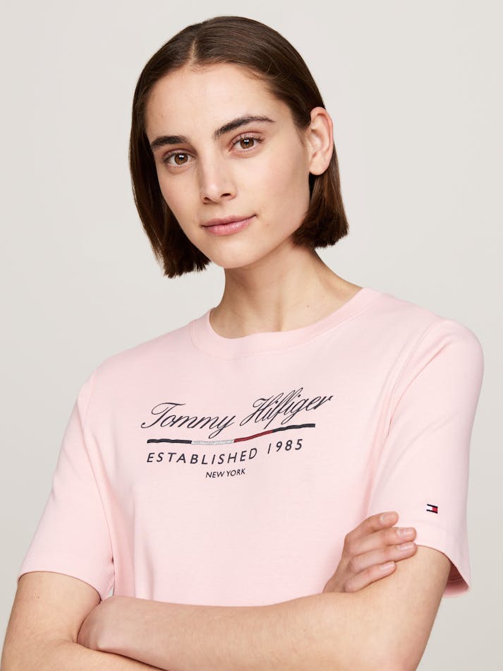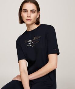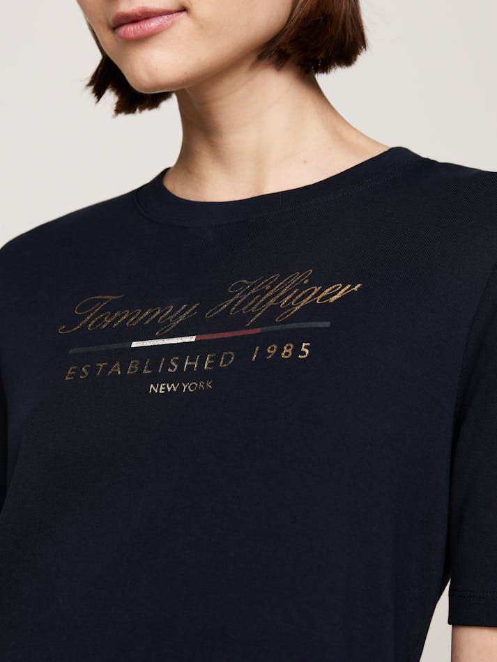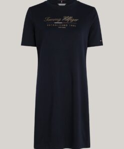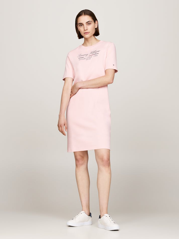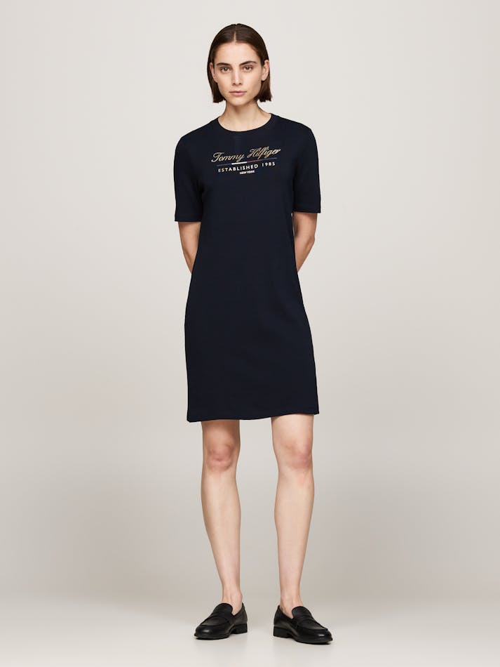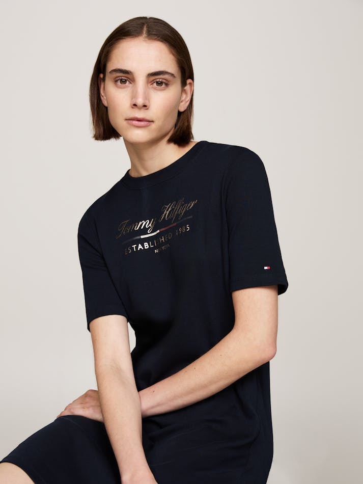 Opt for an effortless Tommy look with this t-shirt dress, made from pure cotton and finished with a metallic logo print on the chest.