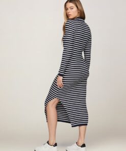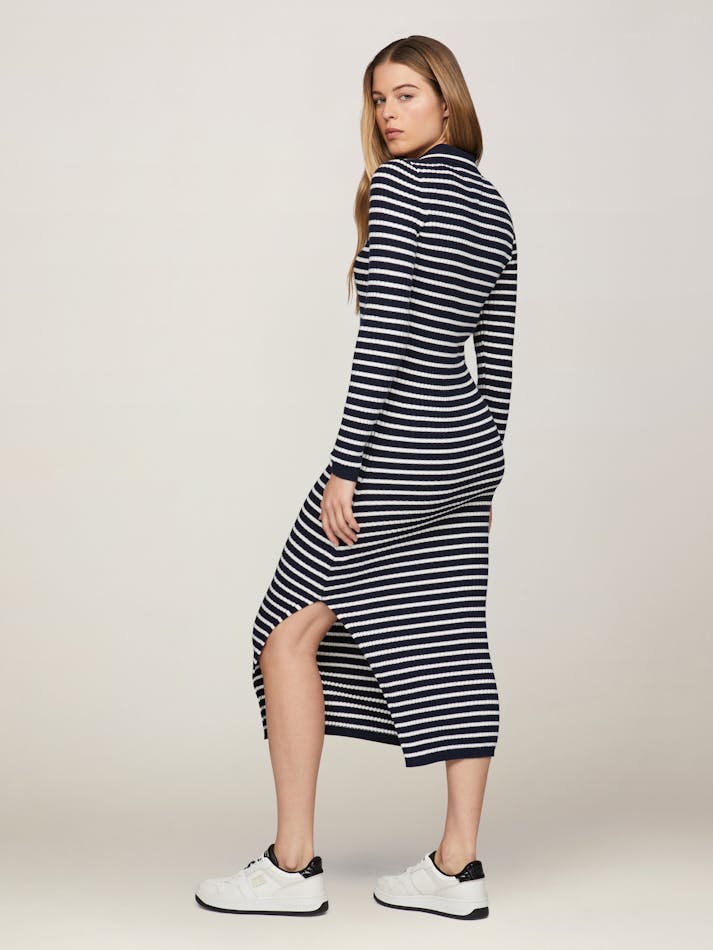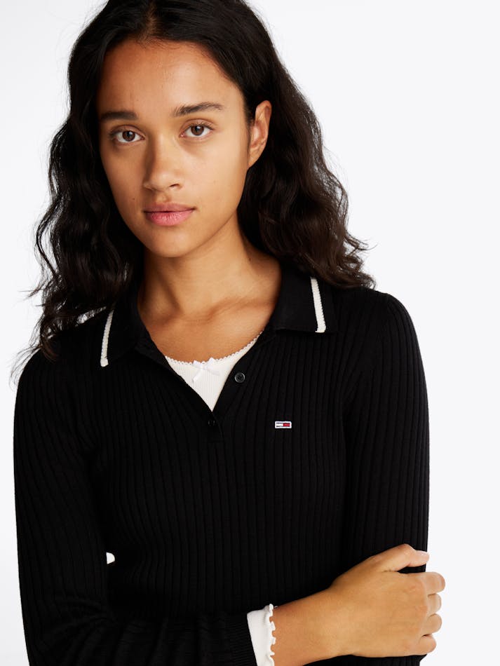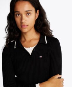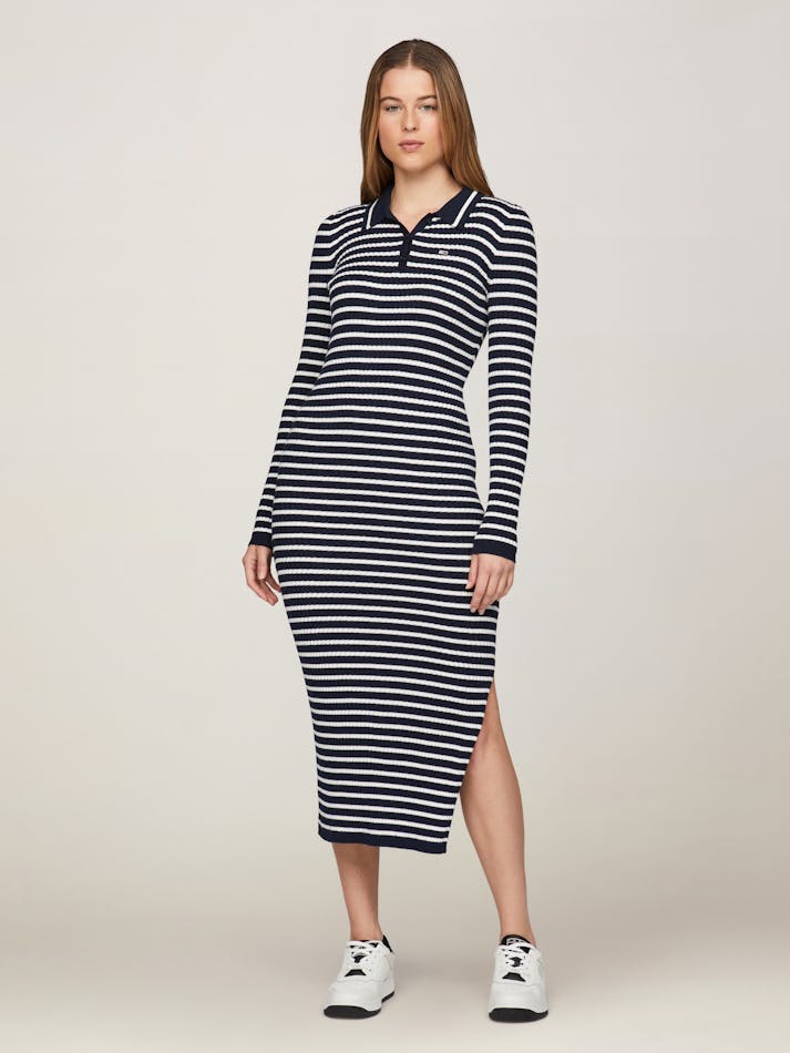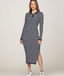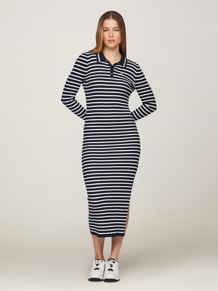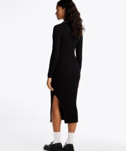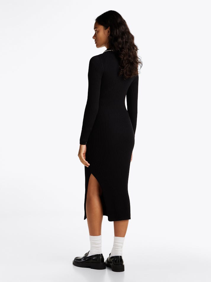RIBBED SLIM MIDI POLO DRESS