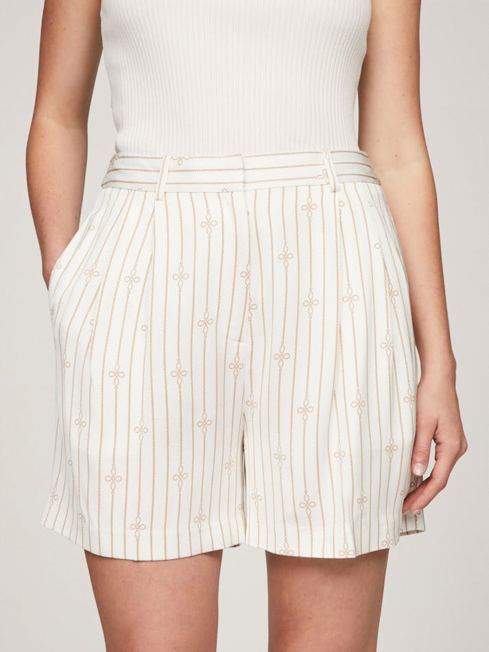 Opt for timeless summer style with these viscose shorts, featuring front pleating and a charming all-over print.