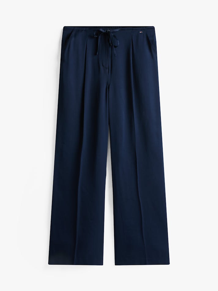These straight-leg trousers are made from drapey sateen and feature a silky drawstring tie on the waist for a touch of finesse.