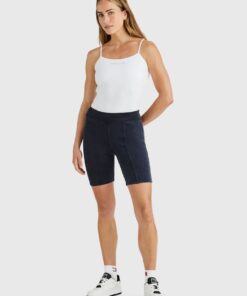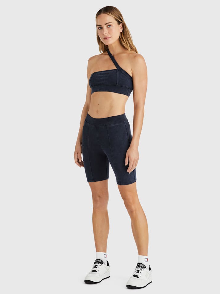 Playing on proportion and transeasonal layering, Tommy Collection by Tommy Jeans takes you on a coast-to-coast tour with an undercurrent of surf and skate. A delicate textured finish and subtle, embroidered serif logo lend an elevated touch to these figure-skimming cycling shorts.