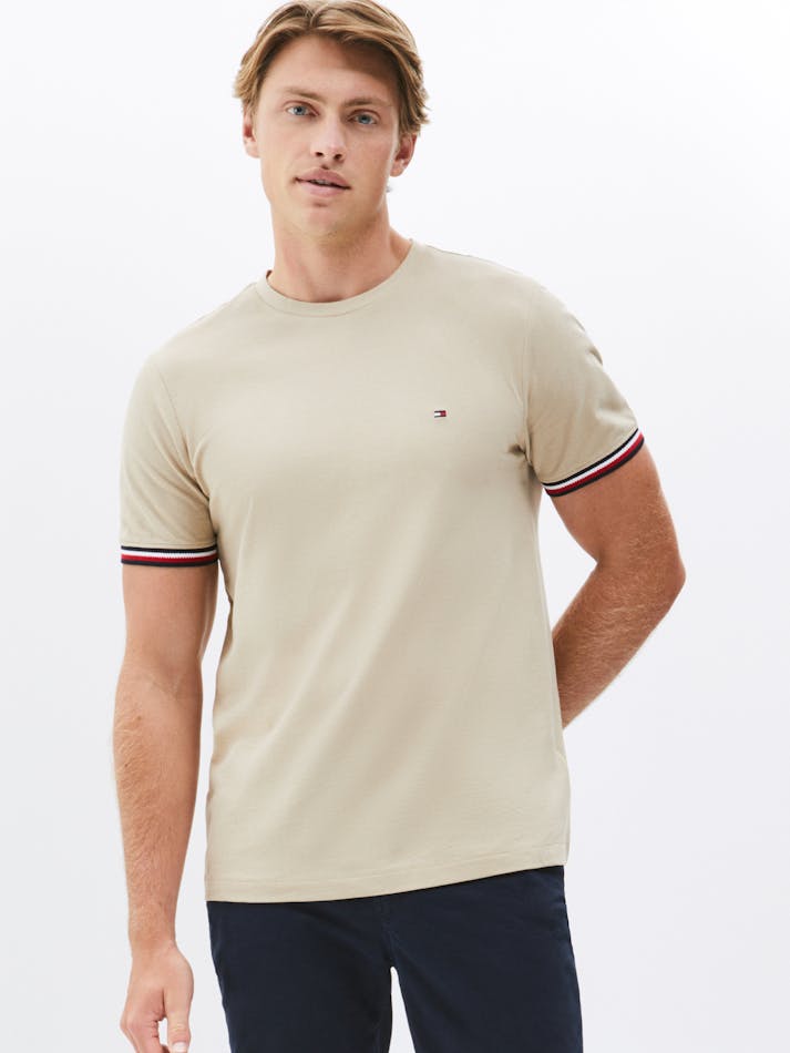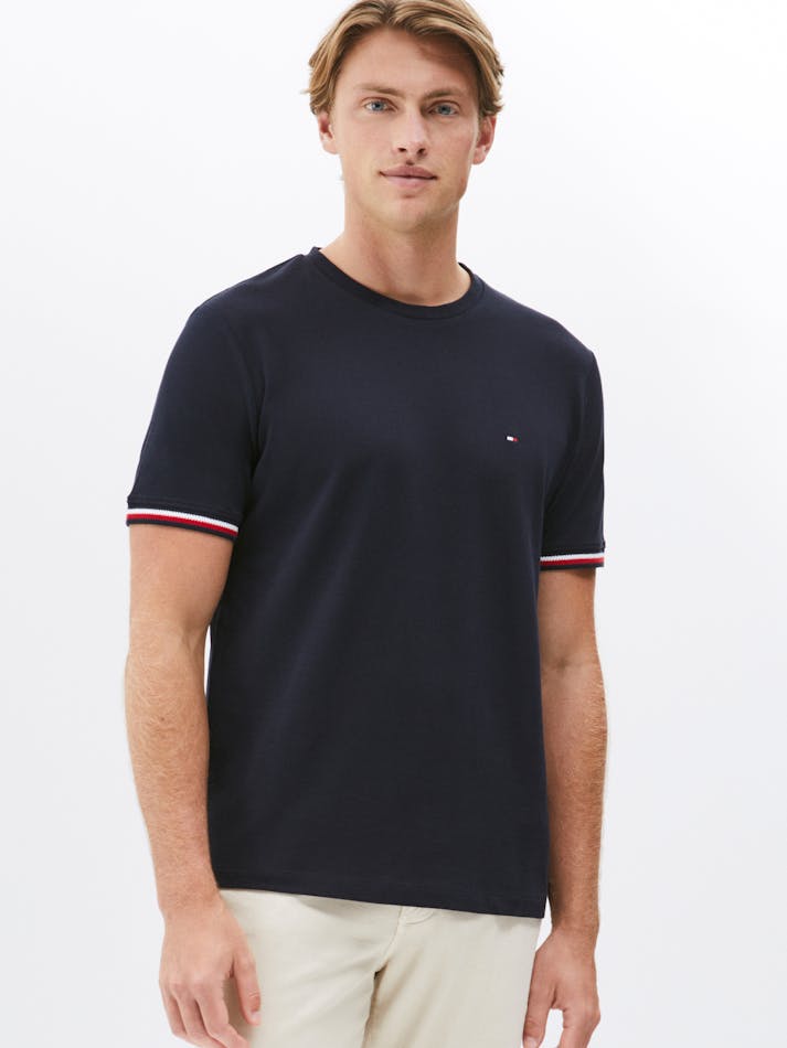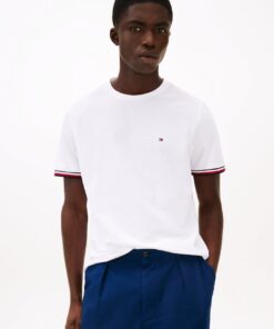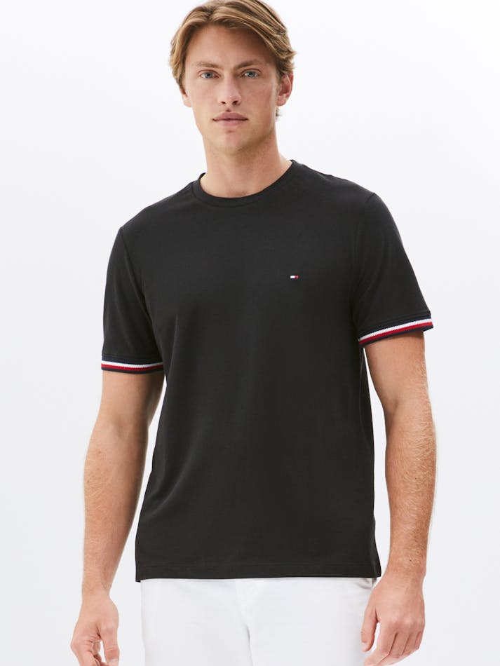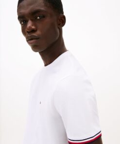 Signature cuffs bring iconic branding to this pure cotton crew-neck tee, along with flag embroidery on the chest.