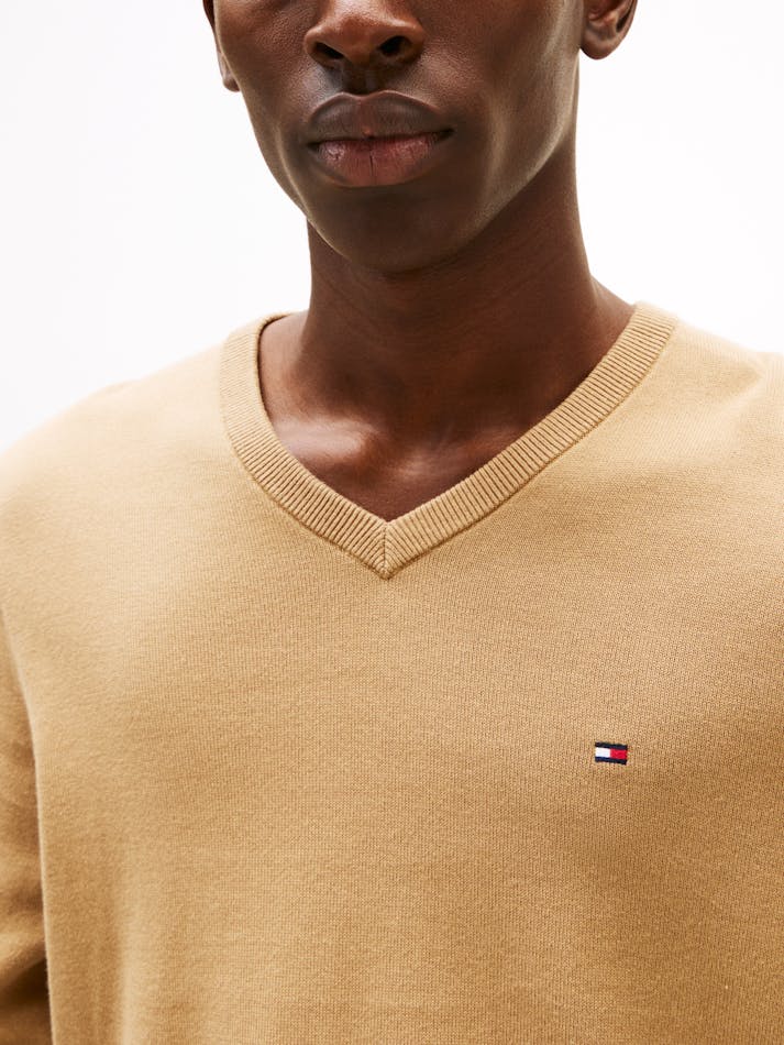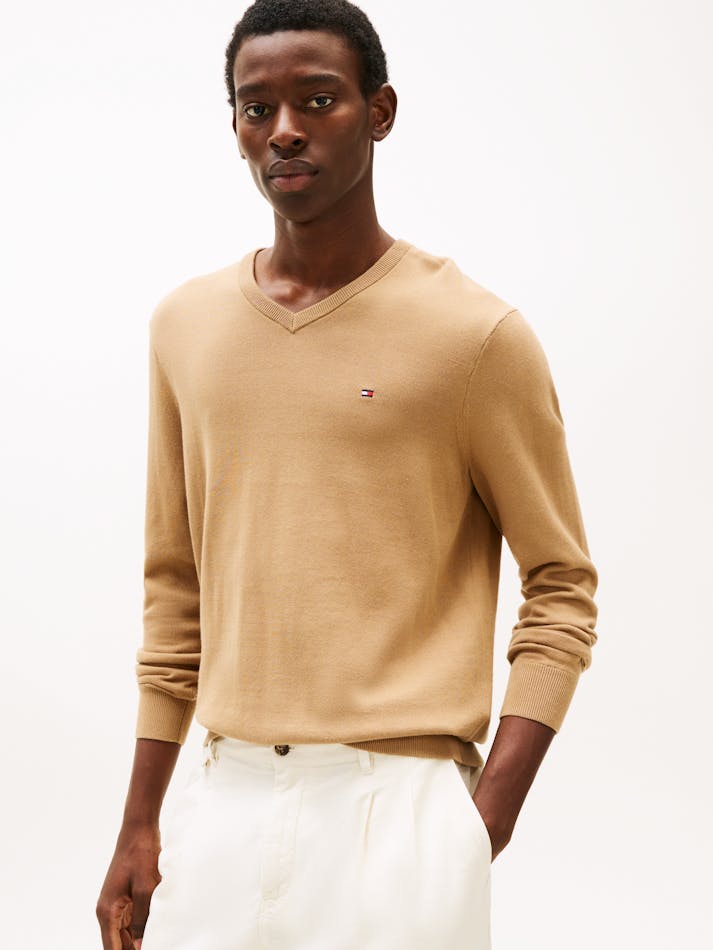 Ideal for layering or styling on its own, this pure cotton knit is cut in a regular fit with a flattering v-neckline. Finished with subtle Tommy Hilfiger branding.