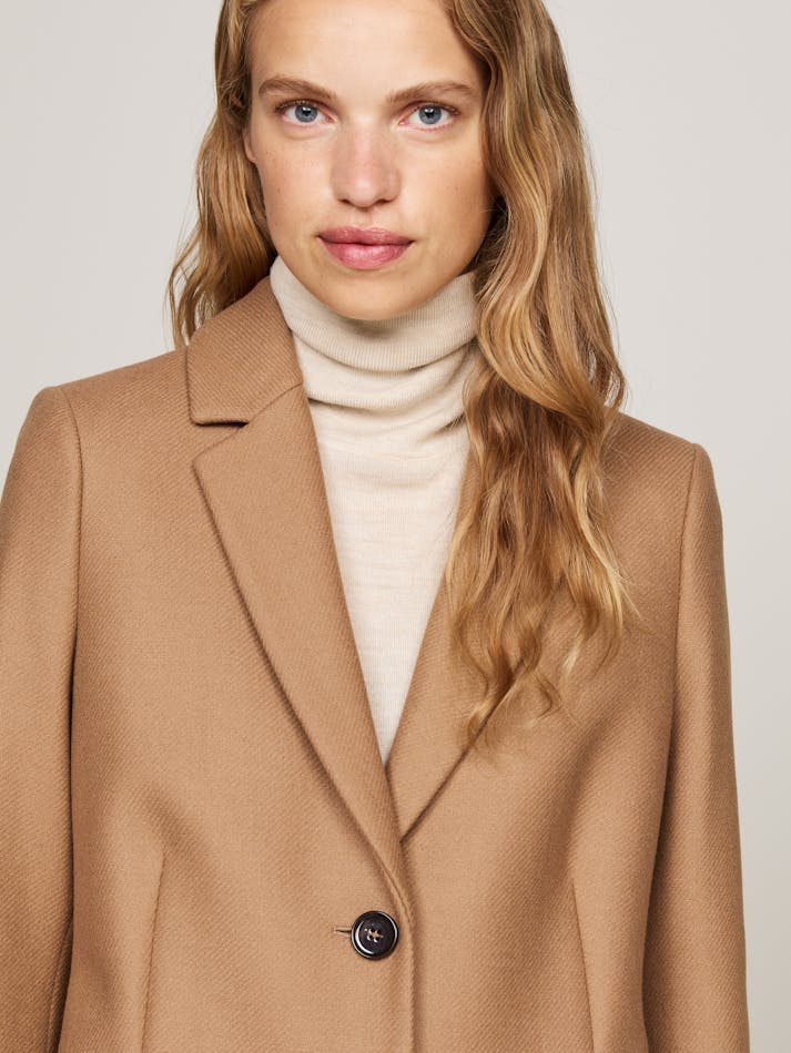 Classically chic and refined, this wool-rich coat is made to a single-breasted silhouette with a luxurious touch of soft cashmere.