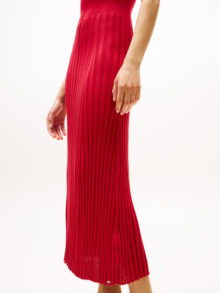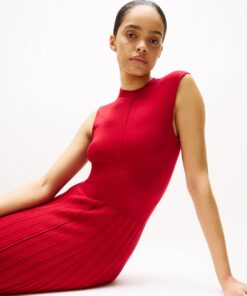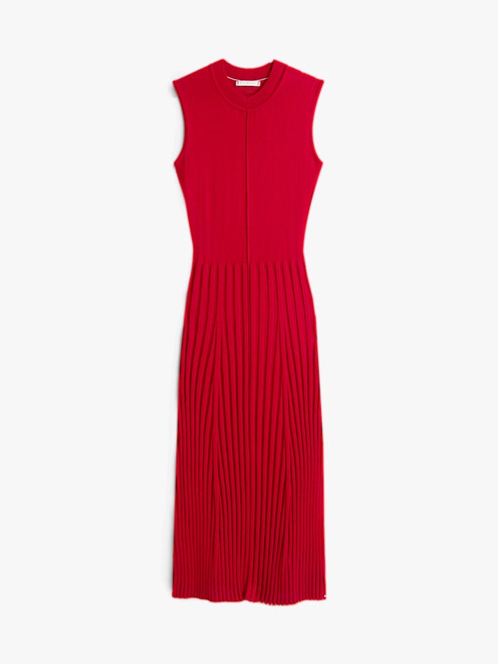 This jumper dress is crafted from a luxuriously smooth fabric and features a pleated midi-length skirt for a modern look.