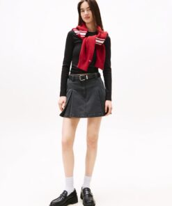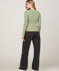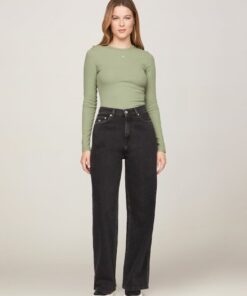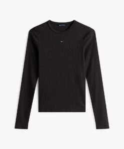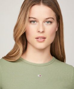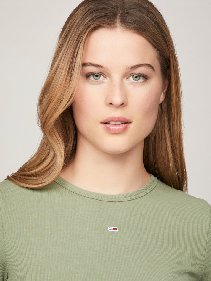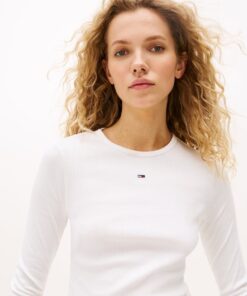 The flattering slim fit gives this essential top timeless appeal, featuring an all-over rib knit and Tommy Jeans flag embroidery on the chest.