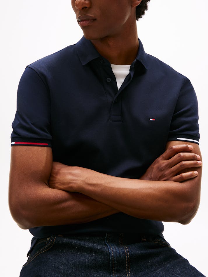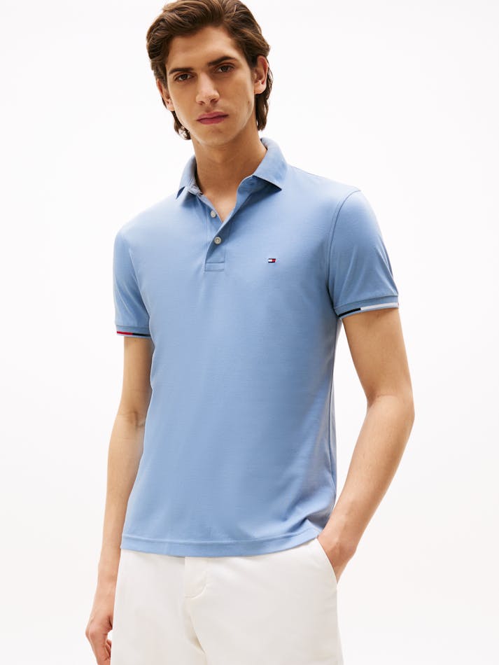 This pure cotton interlock polo shirt is made in a modern slim fit and features tipped cuffs in signature shades.