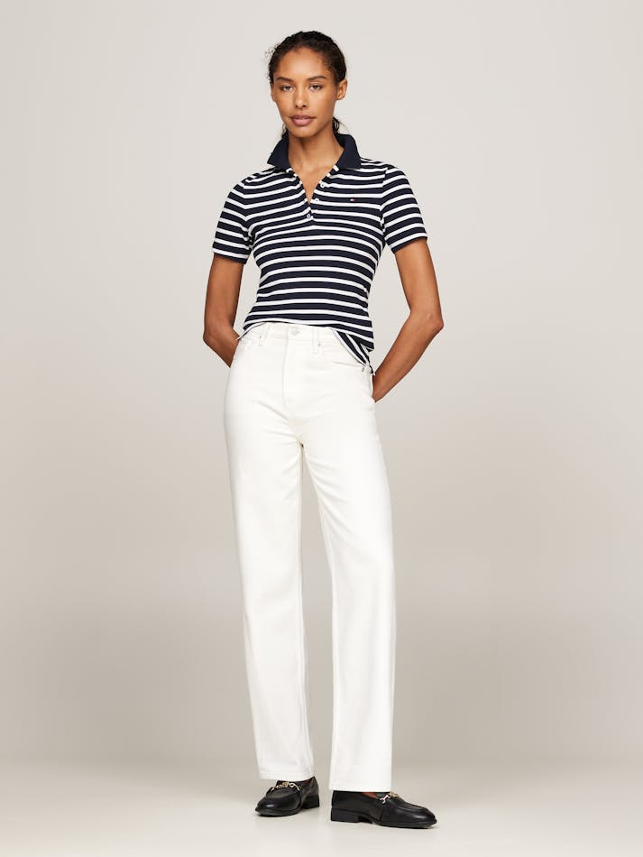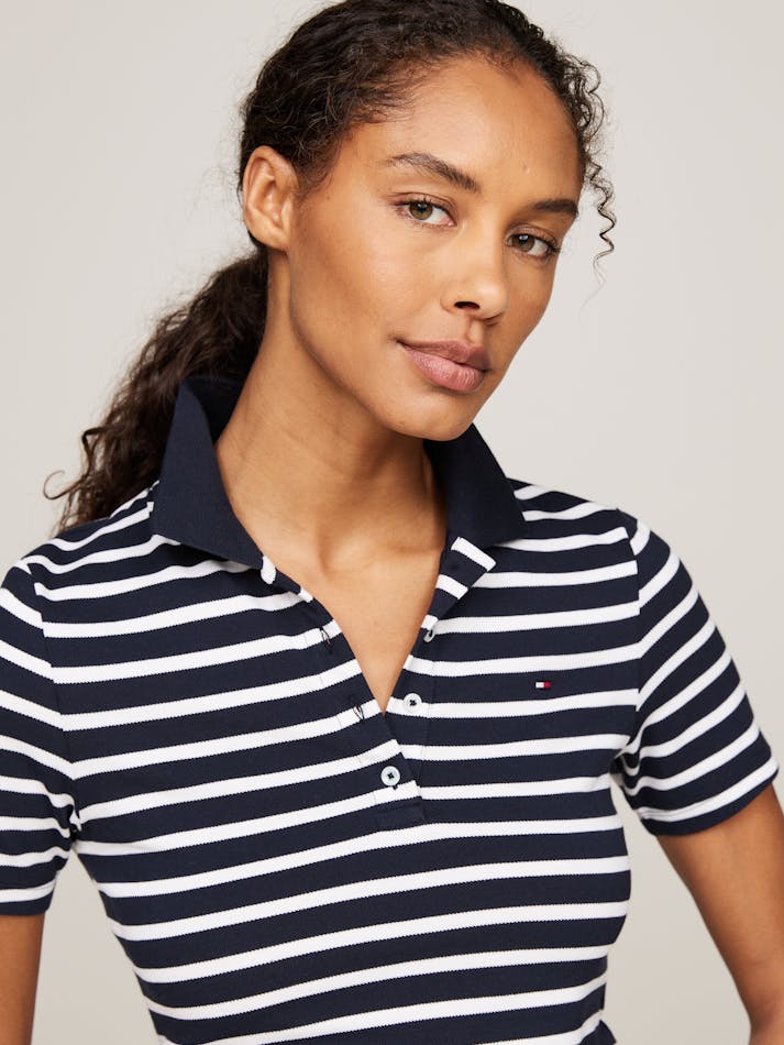 Contrasting horizontal stripes bring coastal vibes to this classic polo shirt, crafted from stretch cotton pique for a flexible slim fit.