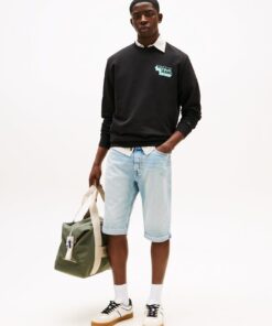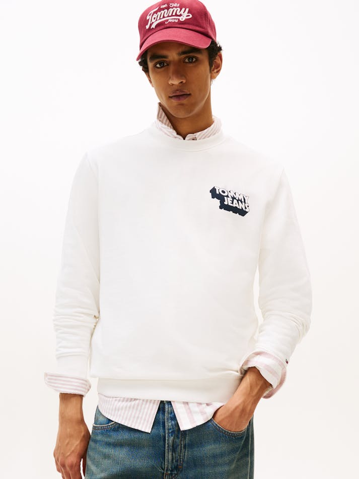 Throw on this crew-neck sweatshirt when it’s time to relax, and rock the Tommy Jeans stack logo and classic flag embroidery.