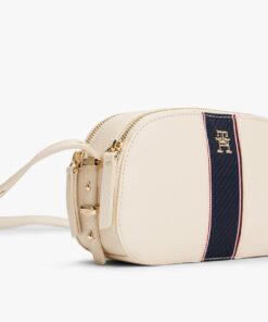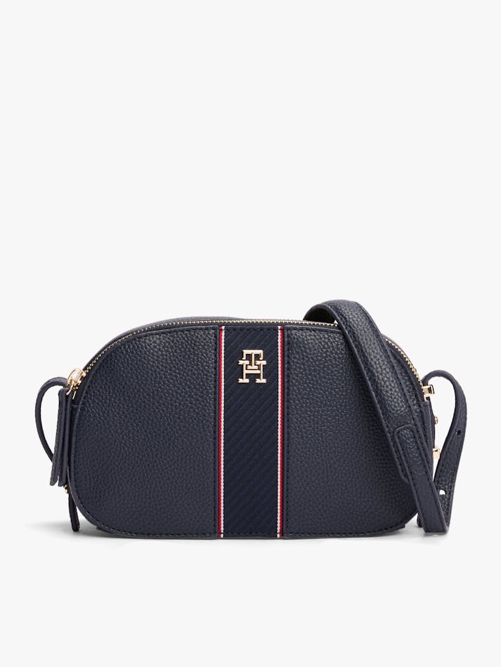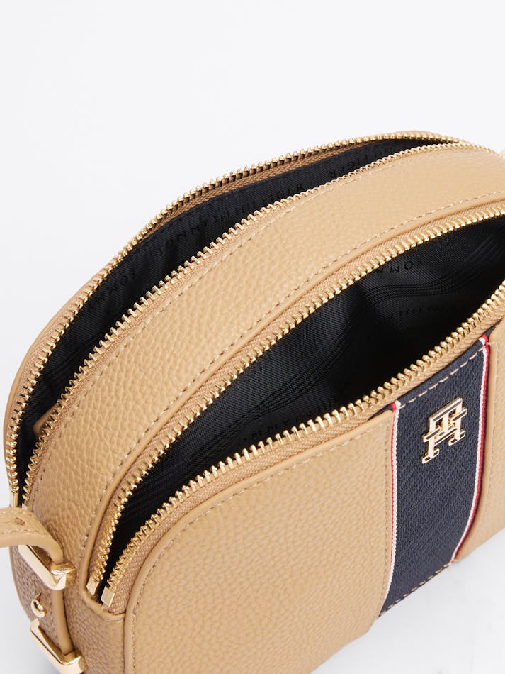 Woven signature detailing, zipped panels and a TH monogram plaque give this smart camera bag its premium style grading.