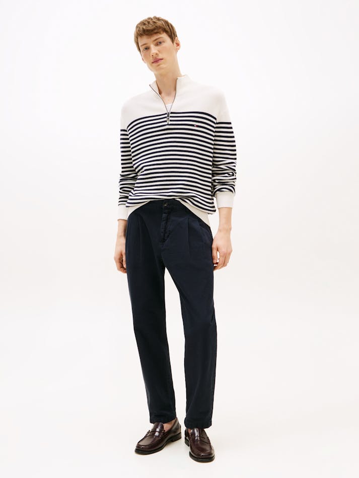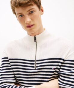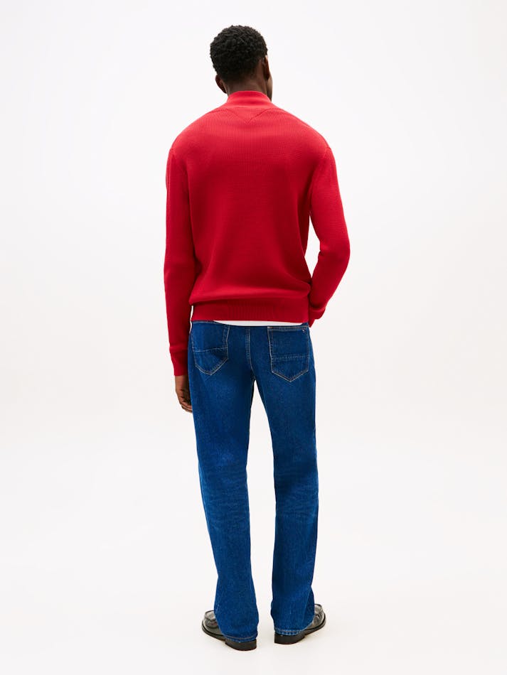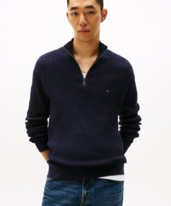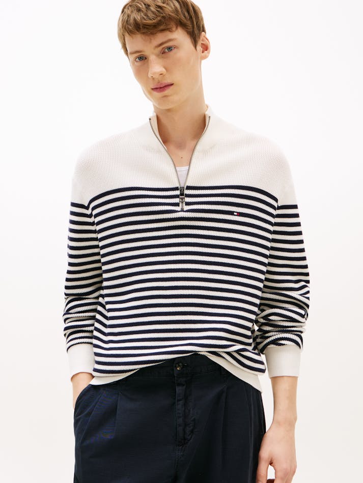 Crafted with a racking stitch for extra texture, this jumper features signature flag embroidery and a quarter-zip neckline for customisable wear.