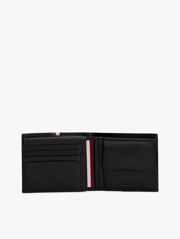 This slender leather wallet with an elevated finish and signature flair has separate spaces for coins, cards and notes.