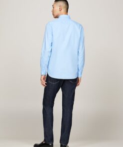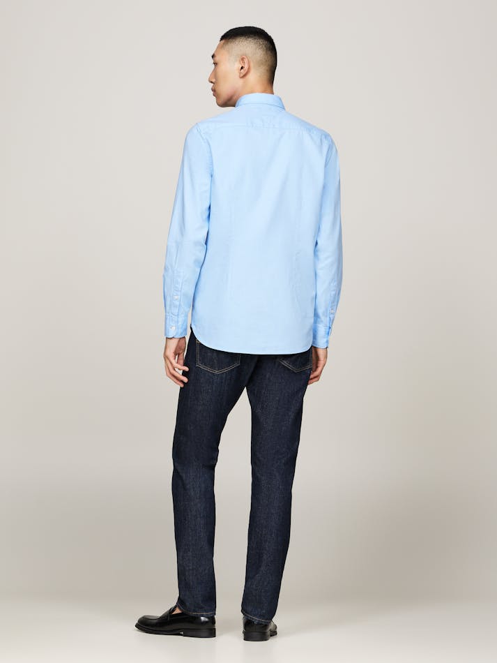 This cotton dobby shirt cuts a sleek silhouette with its slim fit, while Tommy Hilfiger Flex technology keeps things all-day comfortable.