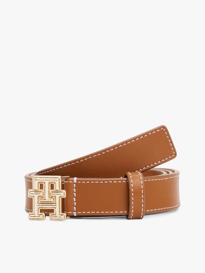 Coordinate your jewellery with this textured leather belt, which makes a stylish statement with its gold-tone TH monogram buckle.