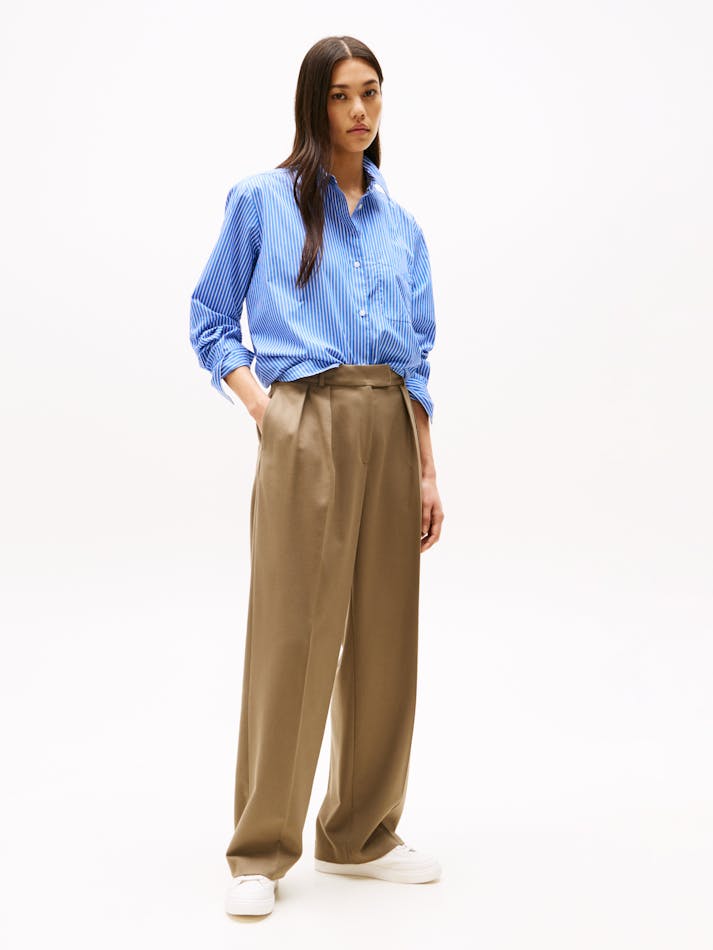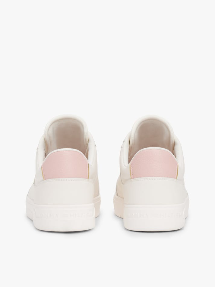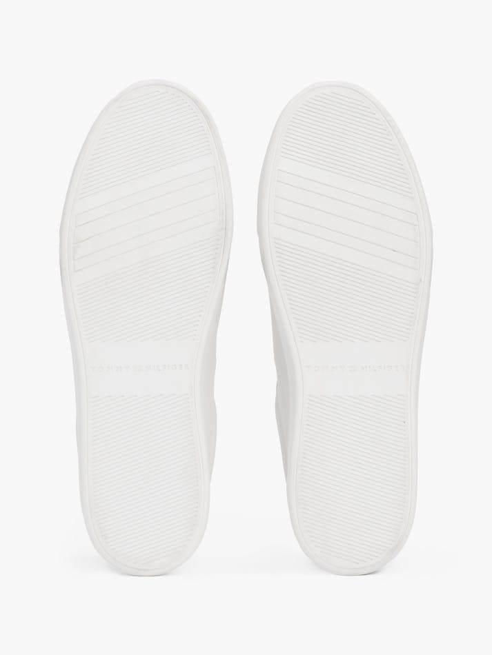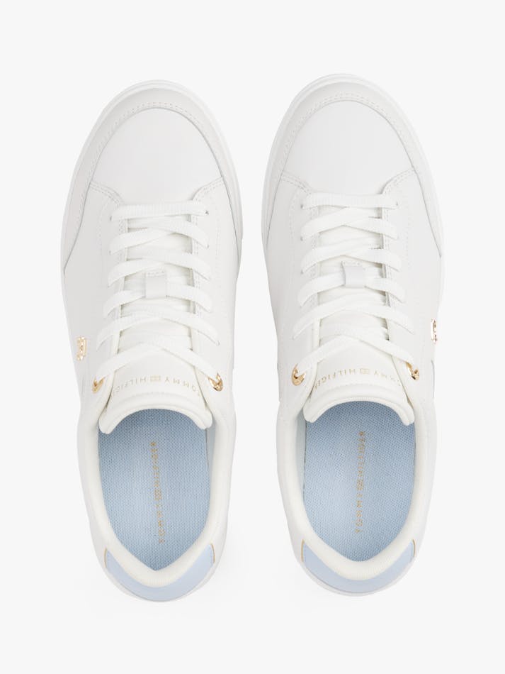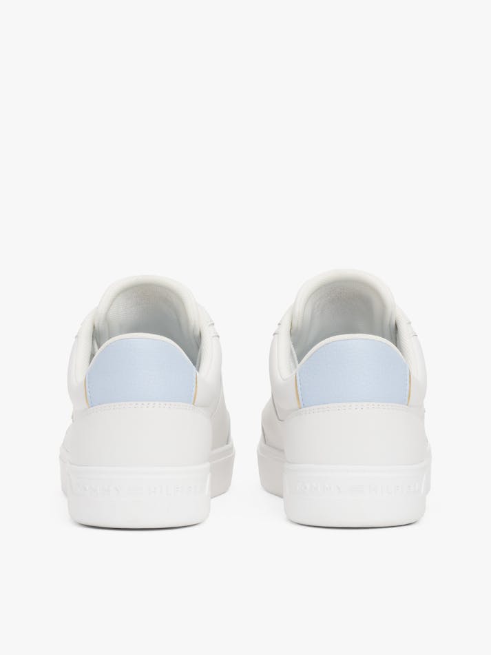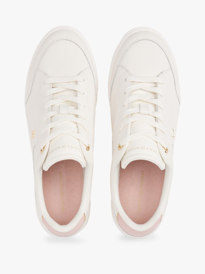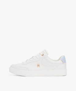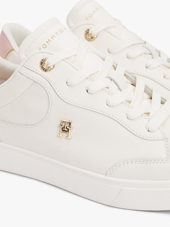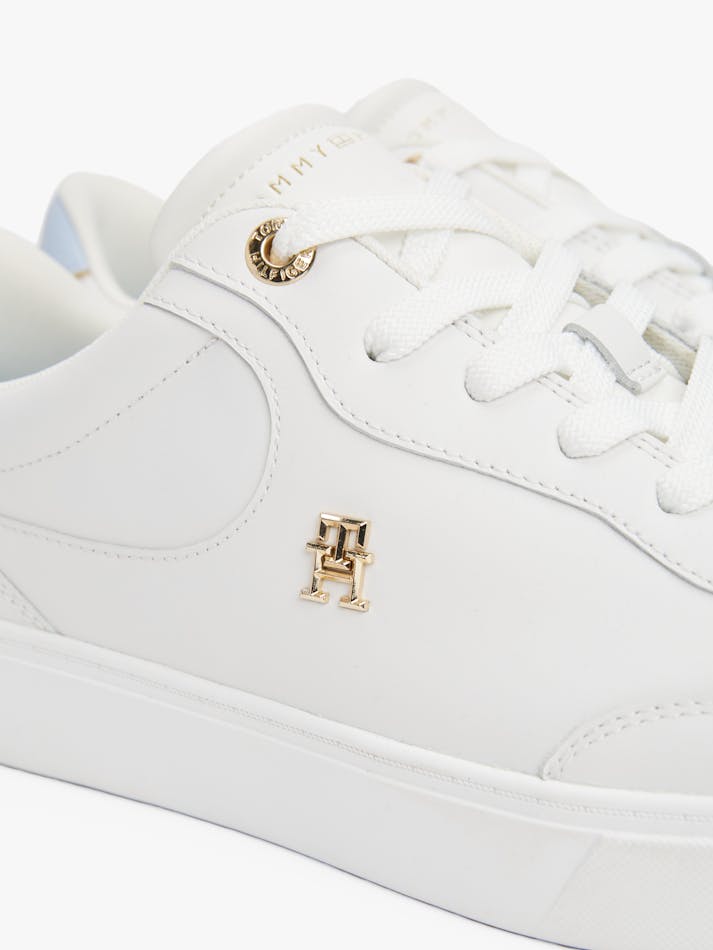 These sophisticated leather court trainers elevate athleisure style with a tonal upper featuring polished hardware and TH monogram plaque detailing.