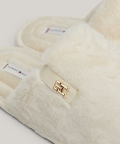 TH MONOGRAM PLAQUE FLEECE SLIPPERS