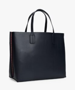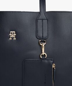 Upgrade your commute with this stylish and practical TH monogram-embellished satchel, offering a spacious interior and a detachable coin purse.