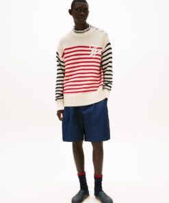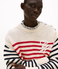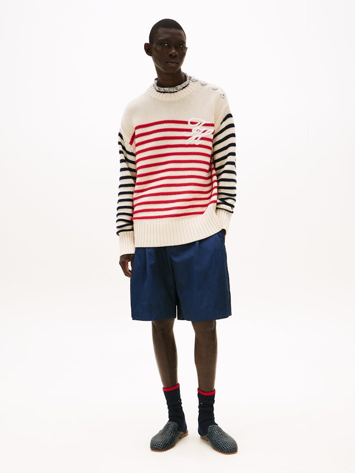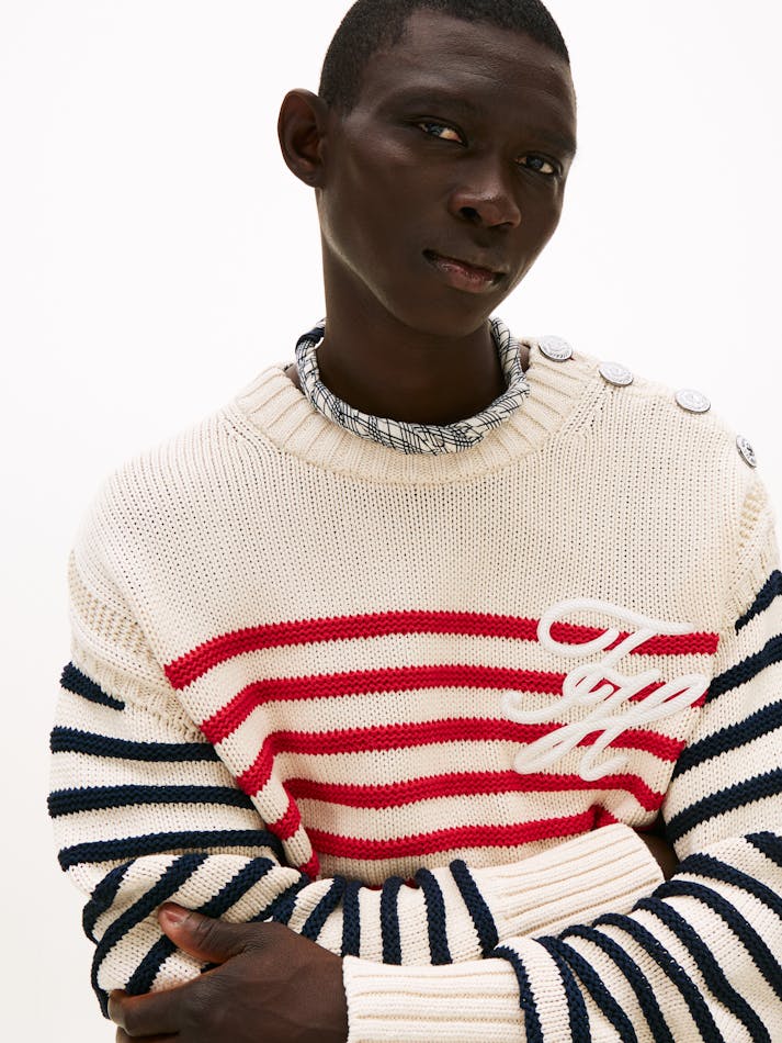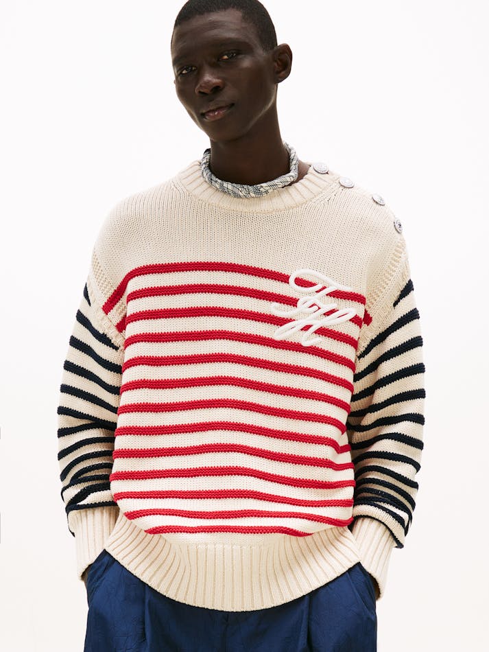 A new American prep wardrobe, presented at New York Fashion Week. This jumper is an elevated take on classic tailoring with timeless Breton stripes seamlessly taking you through the seasons.