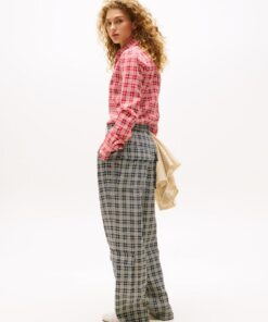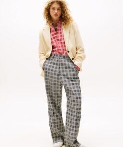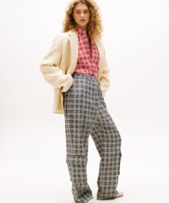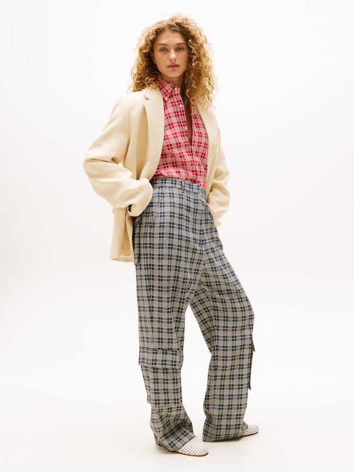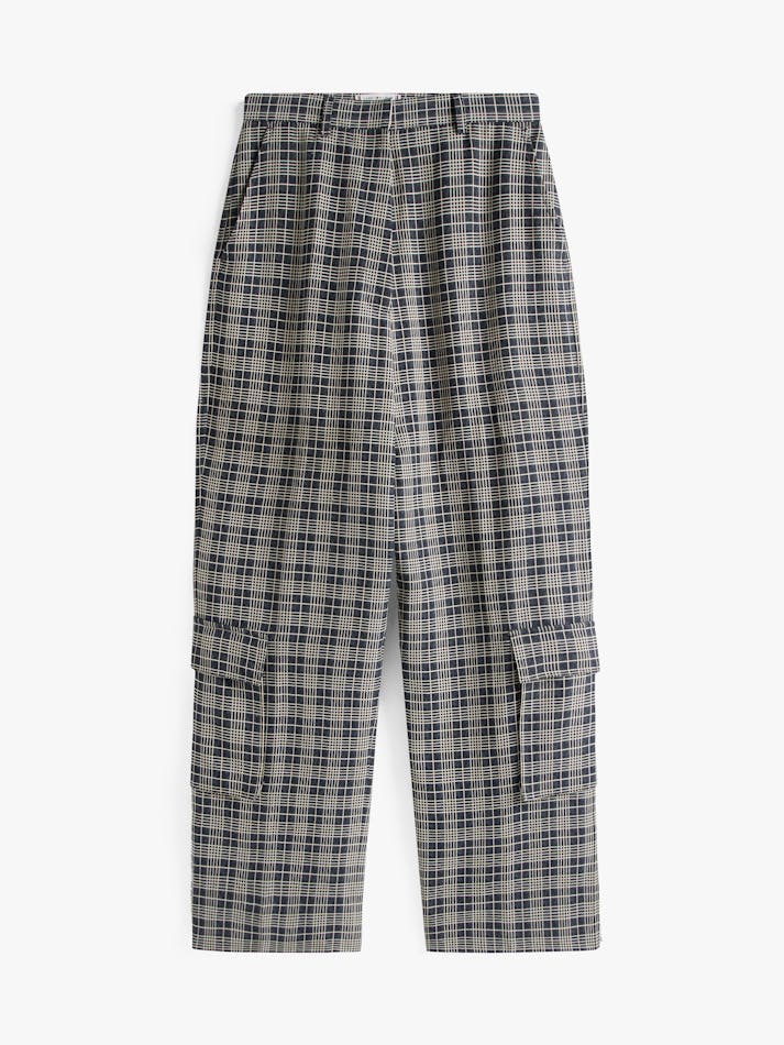 A new American prep wardrobe, presented at New York Fashion Week. The oversized fit and fluid silk-blend fabric make these check cargo trousers perfect for pairing with tailored blazers.