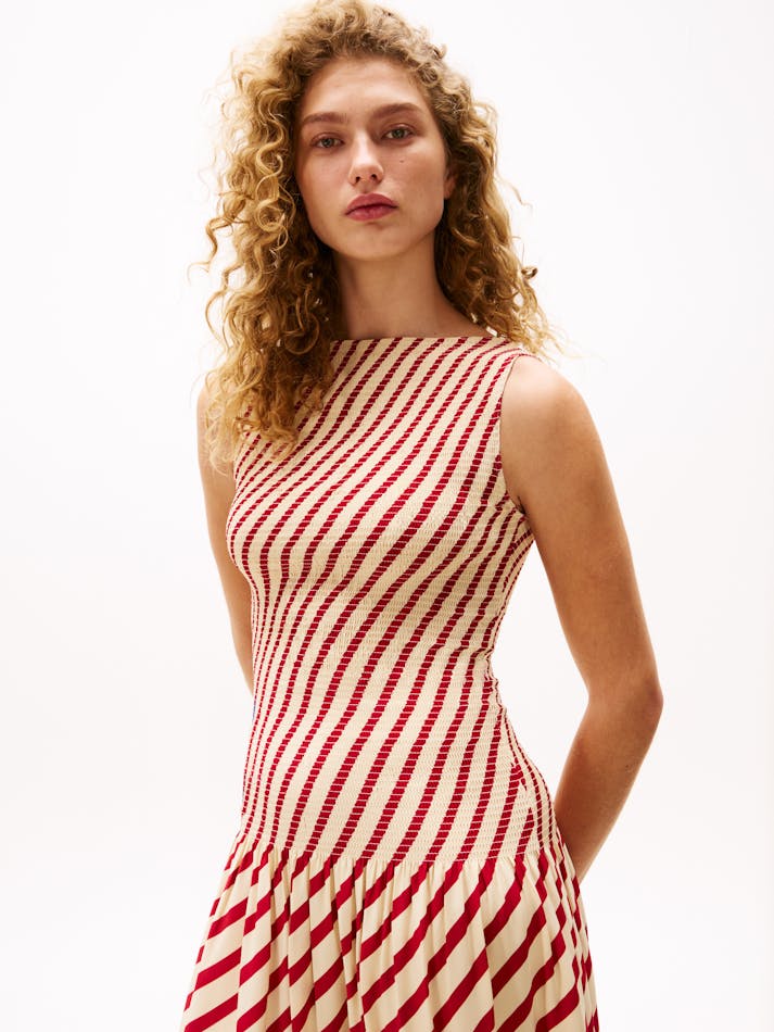 Sofia Richie Grainge lives the everyday twist in Tommy Hilfiger’s most covetable Spring pieces. Portray a refined look in this sleeveless maxi dress, featuring a timeless stripe design and cut to a flattering fit-and-flare silhouette.
