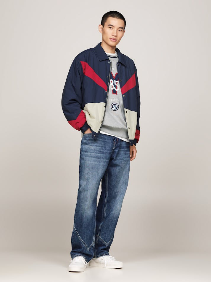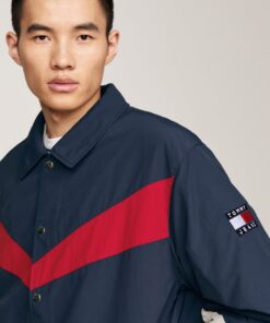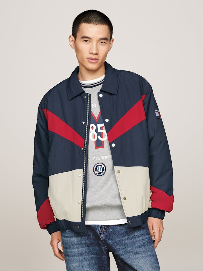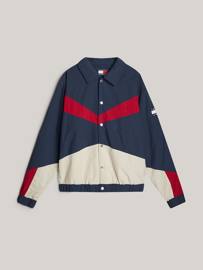 Bring your transitional outer layers up to date with this coach jacket sporting a colour-blocked design and subtle Tommy Jeans branding.