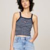 Complete a warm-weather look with this crop top, featuring a ribbed texture and a vivid Tommy badge on the chest.
