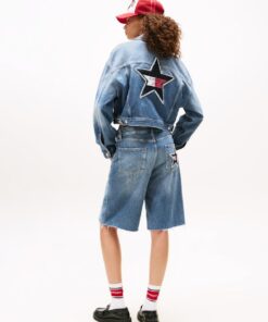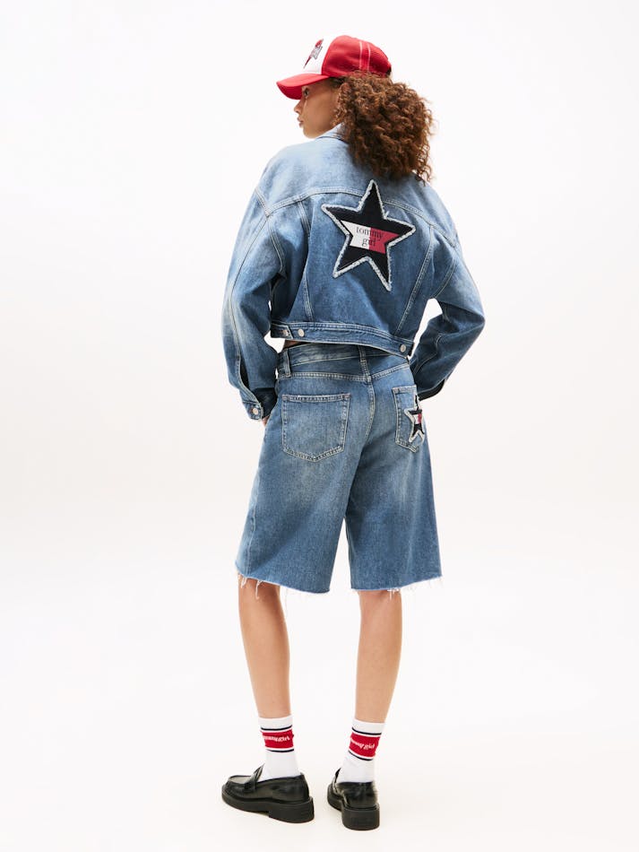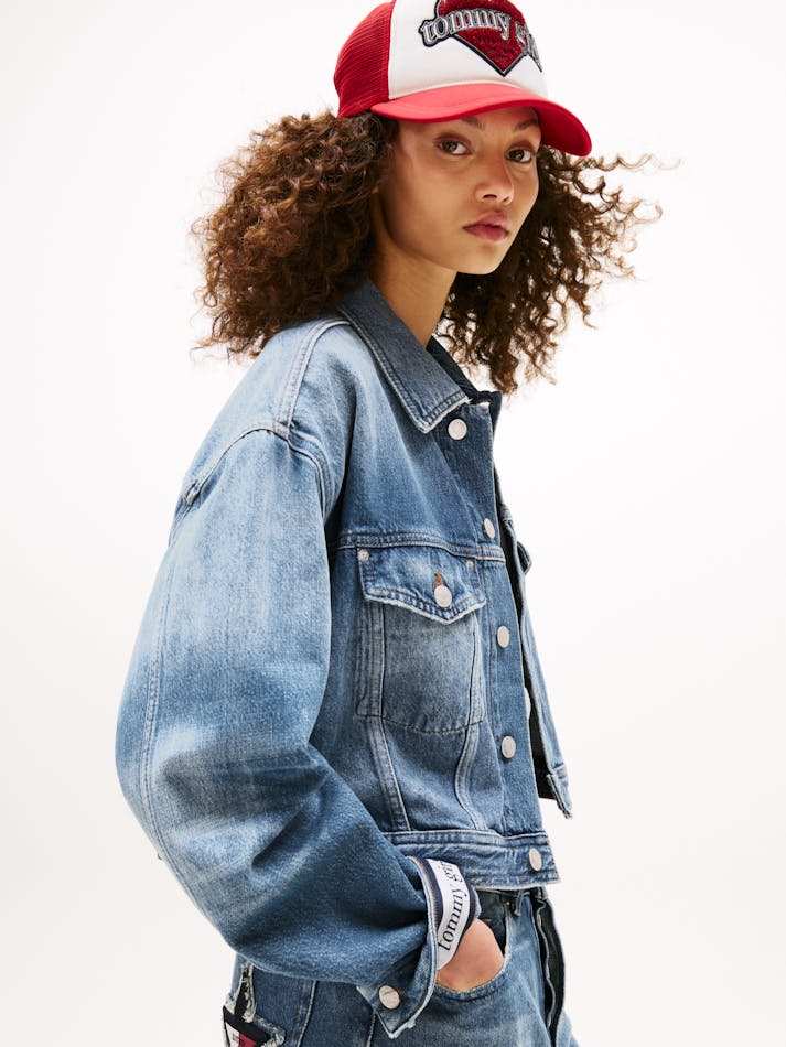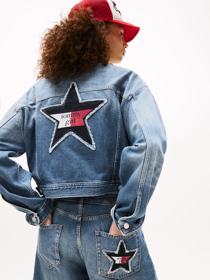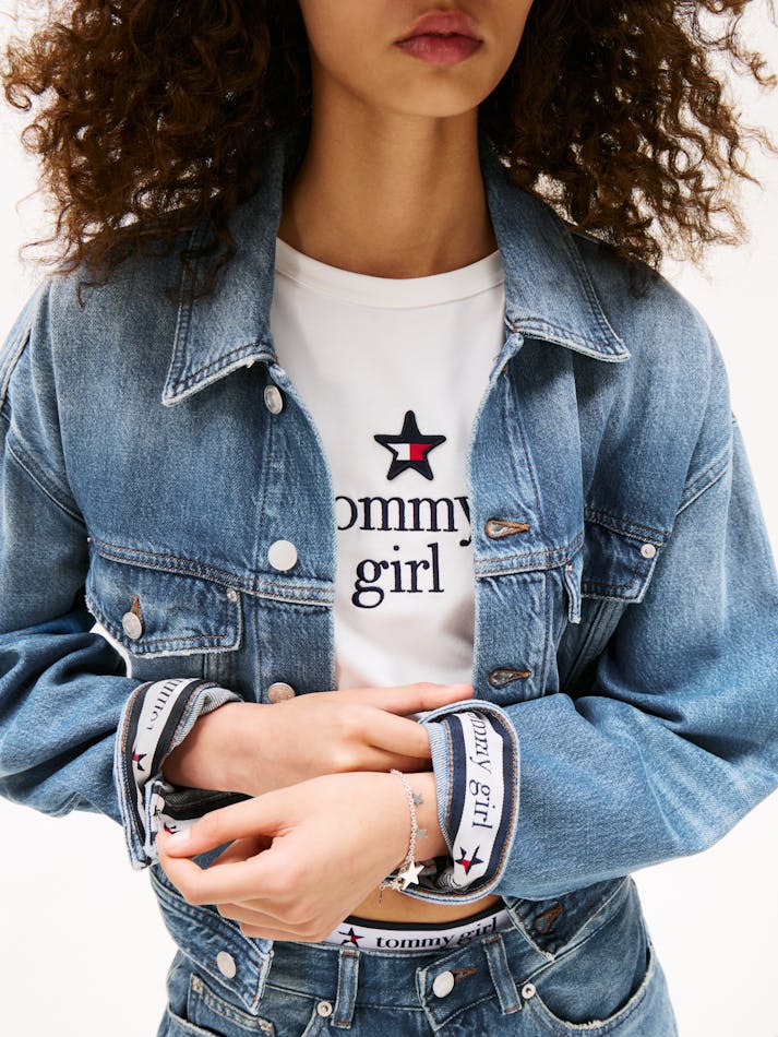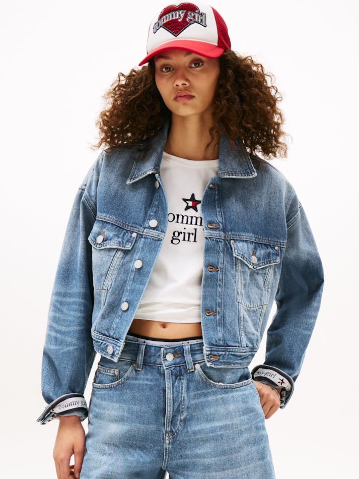 TOMMY GIRL BACK LOGO CROPPED OVERSIZED DENIM JACKET