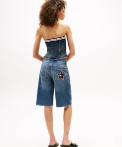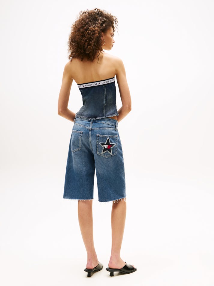 TOMMY GIRL REPEAT LOGO DENIM TUBE TOP