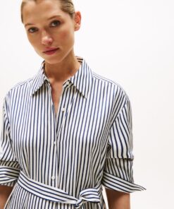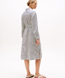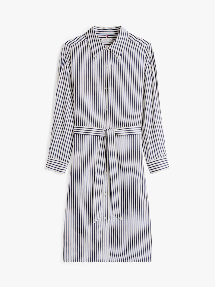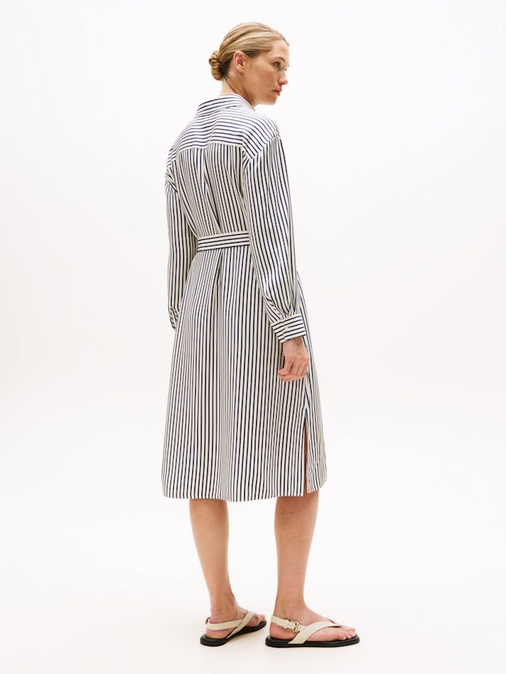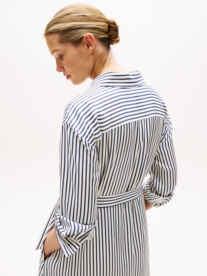 A wardrobe staple, this midi shirt dress is crafted from viscose. The vertical stripes and self-tie waist create a flattering silhouette that offers versatility for casual days or smart occasions.